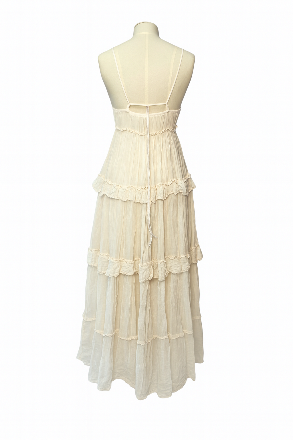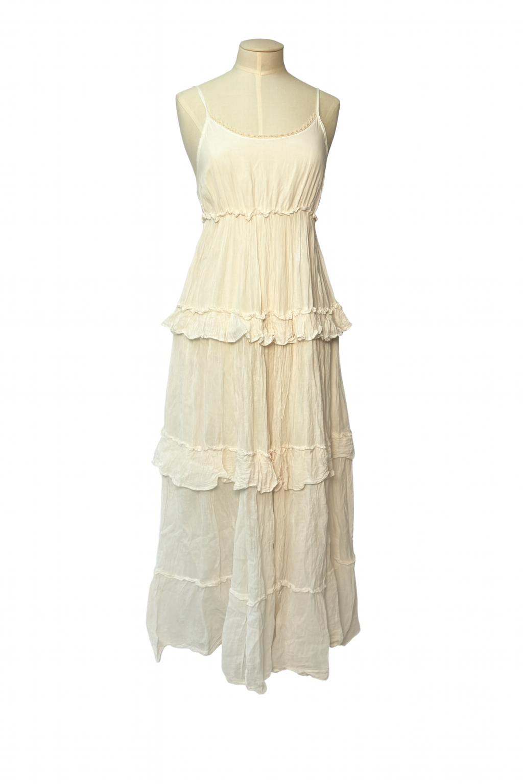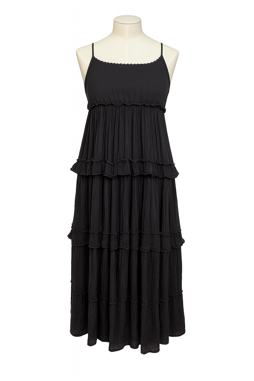 This versatile one-size-fits-all dress is designed for comfort and adaptability, featuring stretchy elastic waistbands that gently conform to different body shapes. Adjustable ties add extra flexibility, allowing the wearer to customize the look and feel, whether cinched for a defined silhouette or left on looser for relaxed wear.