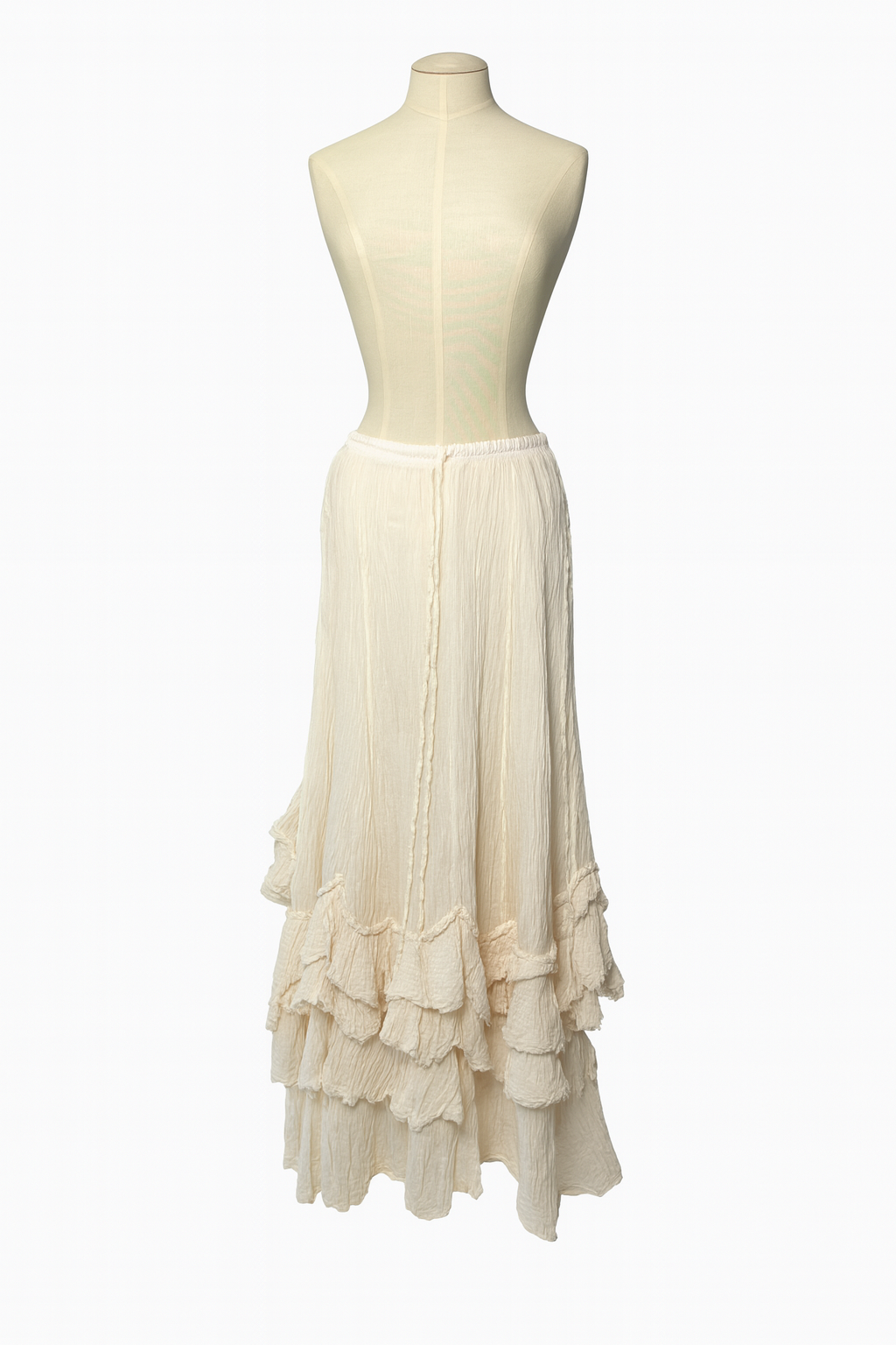 This versatile one-size-fits-all skirt is designed for comfort and adaptability, featuring stretchy elastic waistbands that gently conform to different body shapes.